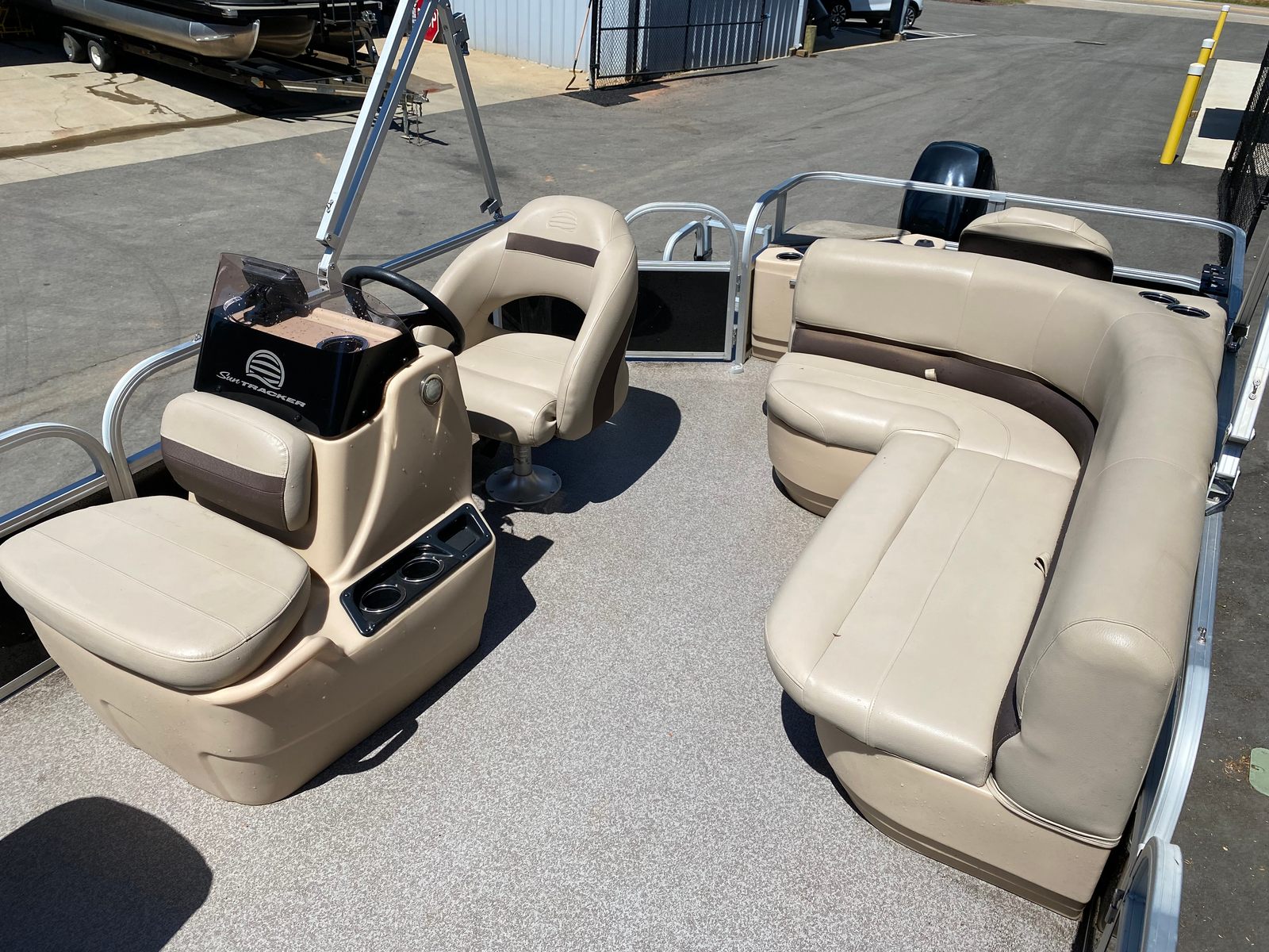 This 2019 Suntracker 18DLX Bass Buggy is thoughtfully equipped to enhance your time on the water. The spacious deck layout provides plenty of room for family and friends to relax, socialize, or fish. The pontoon’s design prioritizes comfort and convenience, with ample seating and easy access to all areas of the boat. The sturdy construction and quality materials used throughout the Suntracker 18DLX Bass Buggy ensure lasting durability and peace of mind, even after years of use.The 18-foot length strikes a perfect balance between maneuverability and space, making it easy to trailer, launch, and dock. The single-engine setup simplifies maintenance and operation, allowing you to spend more time enjoying the water and less time worrying about upkeep. As a used pontoon boat, this Suntracker model offers the reliability and features you expect from a trusted brand, all at a competitive price point.
