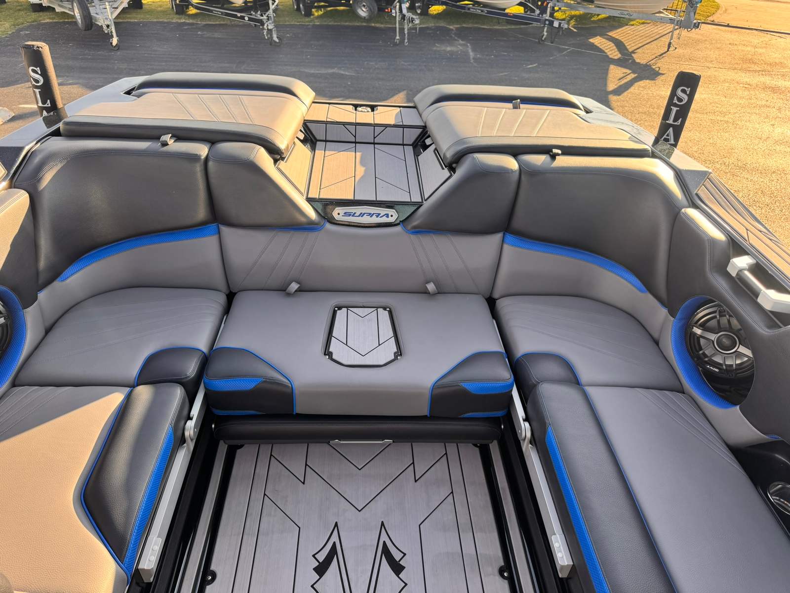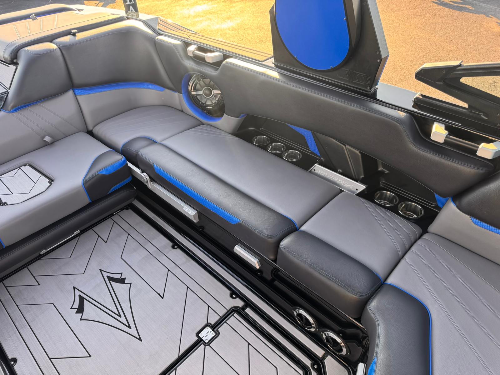 The Supra SA 550 is packed with features designed to enhance your time on the water. Its spacious layout provides ample room for friends and family, making it ideal for social gatherings and group outings. The boat’s innovative hull design ensures a smooth, stable ride, even in choppy conditions, while the advanced ballast system allows you to fine-tune the wake for every rider’s preference. The intuitive helm puts all controls within easy reach, allowing the captain to focus on both safety and fun. With its stylish exterior and thoughtfully designed interior, this Supra boat for sale offers both functionality and flair.