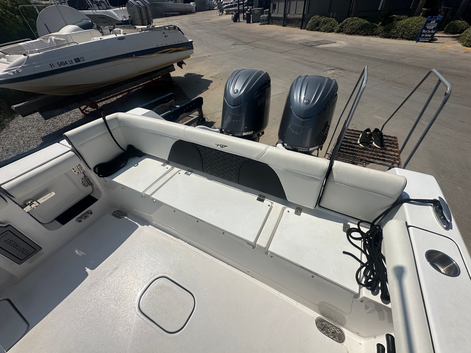 The Tidewater 256 LXF Center Console is designed with both the avid angler and the casual boater in mind. Its spacious layout provides plenty of room to move about, making it ideal for casting lines or socializing with guests. The ergonomic helm station offers excellent visibility and intuitive controls, ensuring a comfortable and confident driving experience. The boat’s length of just over 25 feet allows for easy maneuverability while still offering generous deck space for gear, coolers, and seating.Special features of the 256 LXF include a thoughtfully designed center console layout that maximizes both storage and accessibility. The twin engines not only provide exceptional power but also enhance the boat’s balance and stability, making it a pleasure to operate in a range of conditions. The modern styling, quality construction, and attention to detail are evident throughout, from the sleek lines of the hull to the premium finishes on deck.