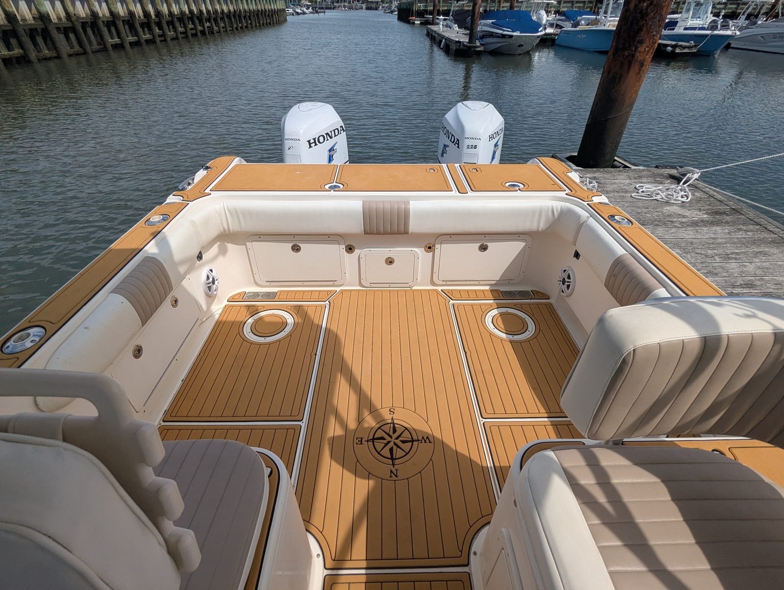 Equipped with twin engines delivering a combined 450 horsepower, the World Cat 270 EC offers impressive power and agility on the water. With 900 engine hours, these engines have proven their reliability and are ready for many more adventures. The dual engine setup ensures excellent maneuverability, making docking and navigating tight spaces a breeze. Whether you’re cruising at a leisurely pace or picking up speed to reach your favorite fishing spot, the performance of this dual console boat is both exhilarating and dependable. The catamaran hull design further enhances stability, reducing the impact of choppy waters and providing a comfortable ride for everyone on board.