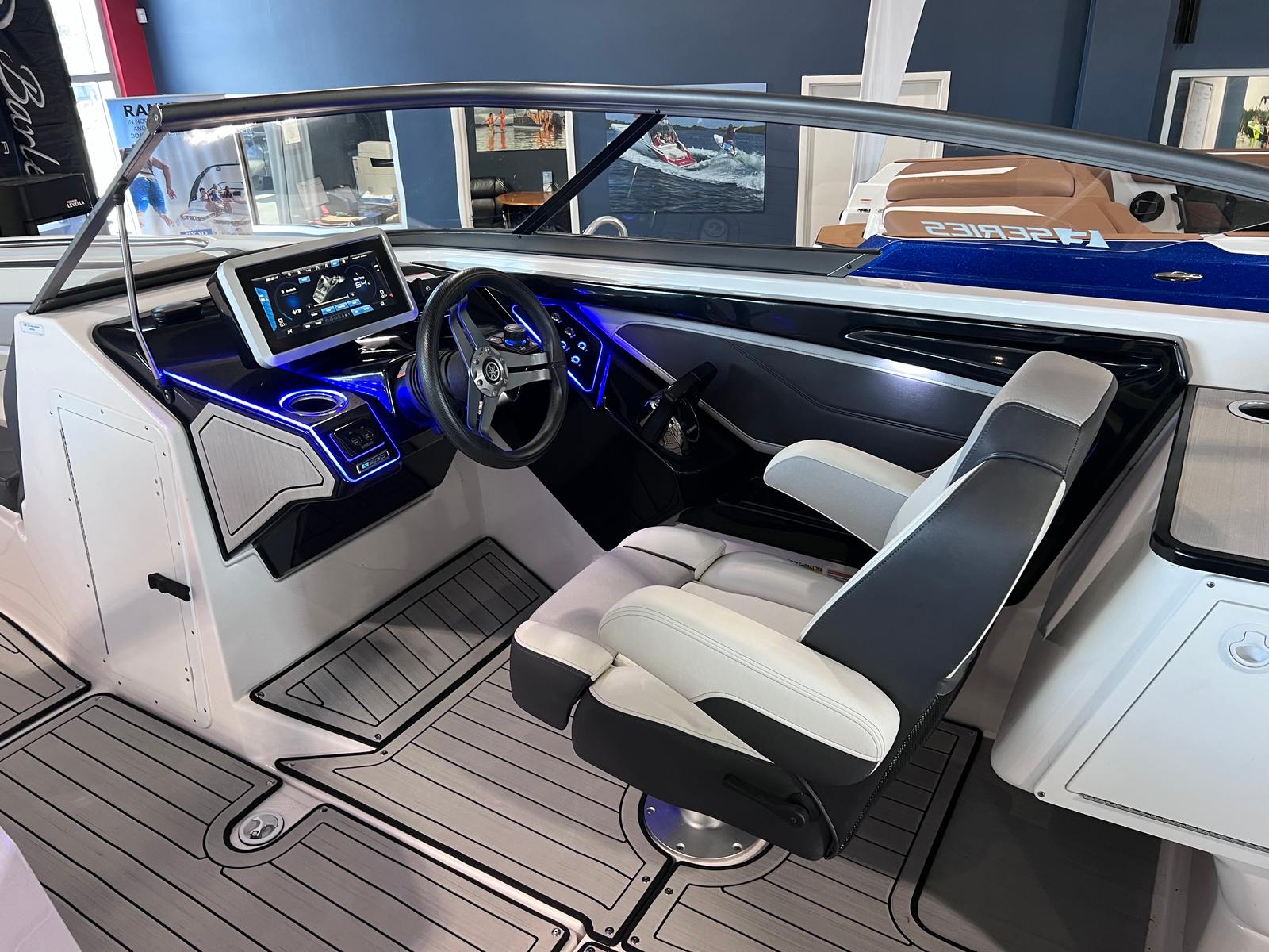 The Yamaha 252 SE is packed with features designed to enhance your time on the water. Its 24.5-foot length provides ample space for family and friends, while the thoughtfully designed layout ensures comfort and convenience throughout the boat. The spacious cockpit is perfect for socializing, with comfortable seating and easy access to all areas of the boat. The helm is equipped with intuitive controls and clear instrumentation, making it easy to monitor performance and navigate with confidence.Special features of the 252 SE include advanced jet propulsion technology, which not only delivers impressive speed and agility but also enhances safety by eliminating exposed propellers. This makes the Yamaha 252 SE an ideal choice for families with children or anyone who values peace of mind on the water. The boat’s modern styling, premium materials, and attention to detail are evident in every aspect of its design, from the sleek exterior to the comfortable interior spaces.